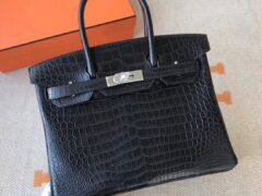 エルメスバーキンレディースバッグエルメスCK89ブラックマットインバーテッドVクロコダイルレザープラチナバッグゴールドバックル/シルバーバックル