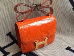 エルメスエルメスコンスタンスバッグ93オレンジ光沢のあるツーポイントクロコダイルレザーコンスタンス19cm