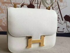 エルメスレディースバッグ卸売エルメス01ピュアホワイトオリジナルエプソム牛革スチュワーデスバッグコンスタンス24cm