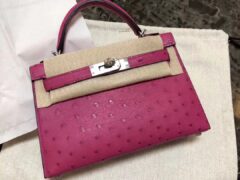 エルメスミニケリー-2L3ローズパープルKKオーストリッチレザーシルバーバックル