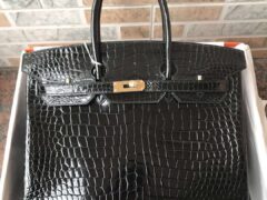 エルメスクラシックレディースバッグエルメスBirkin35CM光沢のあるクロコダイルレザープラチナバッグCK89ブラックゴールドバックル
