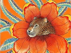 エルメスエルメス「ヒョウと花」18秋冬新作シルクカシミヤスカーフ140*140cmオレンジ
