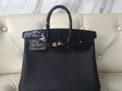 希少エルメスバーキンパールグレーアリゲータークロコダイル25CMシルバー金具