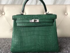 スポットエルメスエルメス6QエメラルドグリーンブライトクロコダイルレザーミニケリーバッグMinikelly22CMシルバーバックル