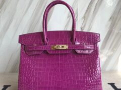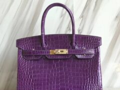 エルメスバーキンレディースバッグエルメスグレープパープルシャイニークロコダイルレザープラチナバッグBirkin30CMゴールドバックル