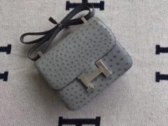 エルメスコンスタンスバッグエルメスムースグレーKKオーストリッチレザースチュワーデスバッグコンスタンス24cmシルバーバックル
