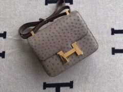 エルメスコンスタンススチュワーデスバッグエルメスエレファントグレーKKオーストリッチレザーコンスタンスバッグ24cmゴールドバックル