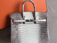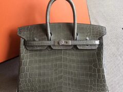 高級レディースバッグエルメスエルメスC81タートルドーブグレー光沢クロコダイルレザーBirkin25プラチナバッグシルバーバックル