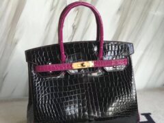 エルメスバーキンバッグエルメスシャイニーベイクロコダイルレザープラチナバッグBirkin30CMCK89ブラック/J5アラビアンナイトピンクパープル