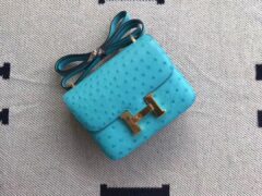 エルメスエルメスコンスタンススチュワーデスバッグ7FピーコックブルーKKオーストリッチレザーコンスタンス18cmゴールドバックル