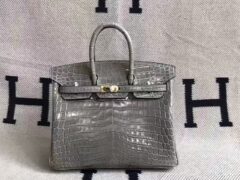 希少エルメスバーキンパールグレーアリゲータークロコダイル25CMシルバー金具