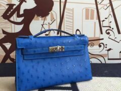 スポットエルメスミニケリーバッグエルメスMinikelly22CM7T電気光学ブルー光沢のあるクロコダイルレザーゴールドバックル