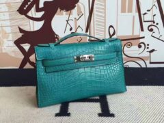 スポットエルメスエルメス6QエメラルドグリーンブライトクロコダイルレザーミニケリーバッグMinikelly22CMシルバーバックル