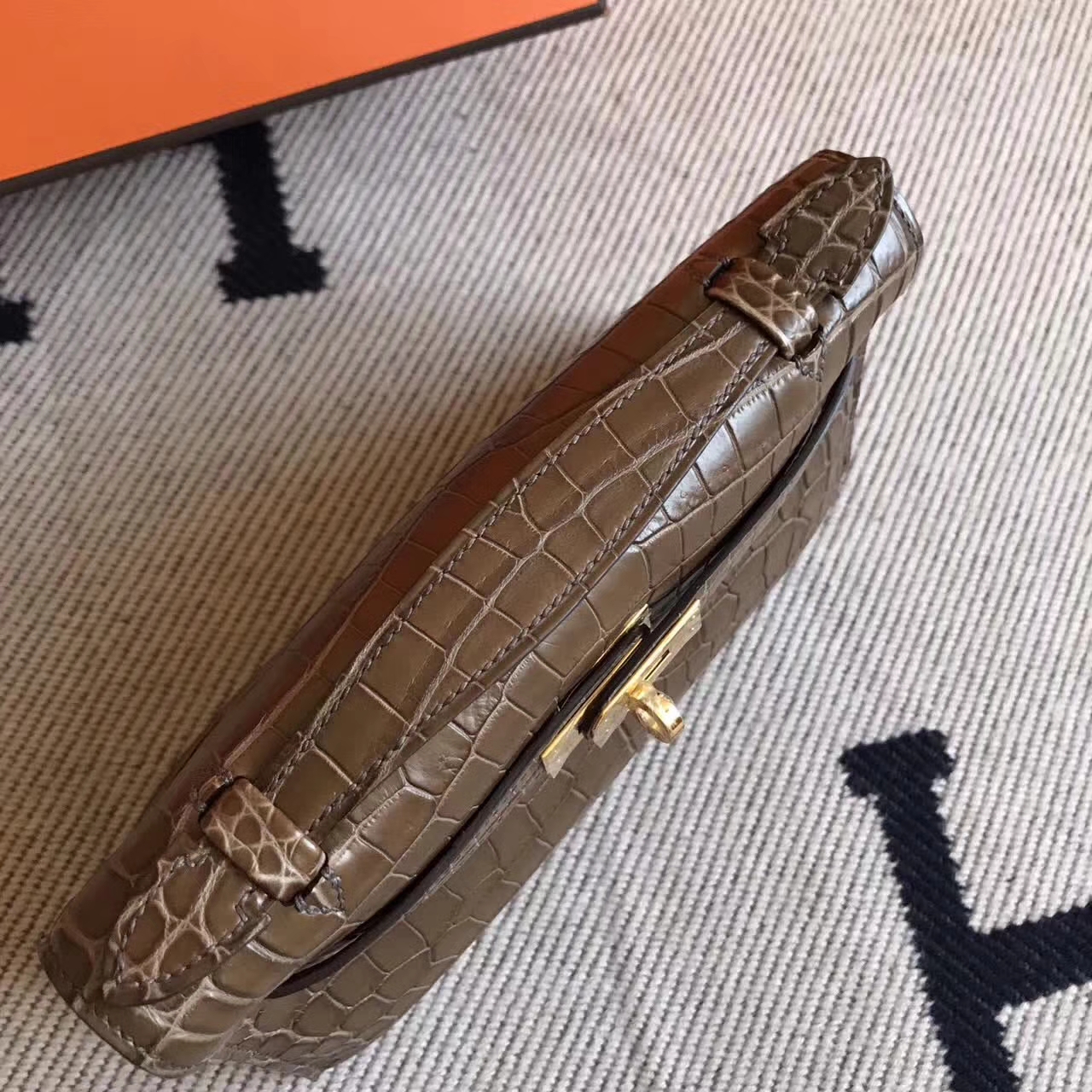 スポットエルメスミニケリーポシェットエルメス1Qミルクセーキパウダーシャイニークロコダイルレザーミニケリーバッグゴールドバックル