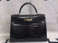 工場直販エルメスエルメスCK89ブラックグロスインバーテッドVクロコダイルケリーバッグケリーバッグ32cm