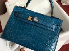 エルメスミニケリーバッグエルメスミニケリー2世代7Wイズミールブルーシャイニークロコダイルレザーゴールドバックル