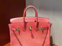 エルメスバーキンレディースバッグエルメス8Wリップスティックパウダー輸入トカゲ肌プラチナバッグ25CMゴールドバックル
