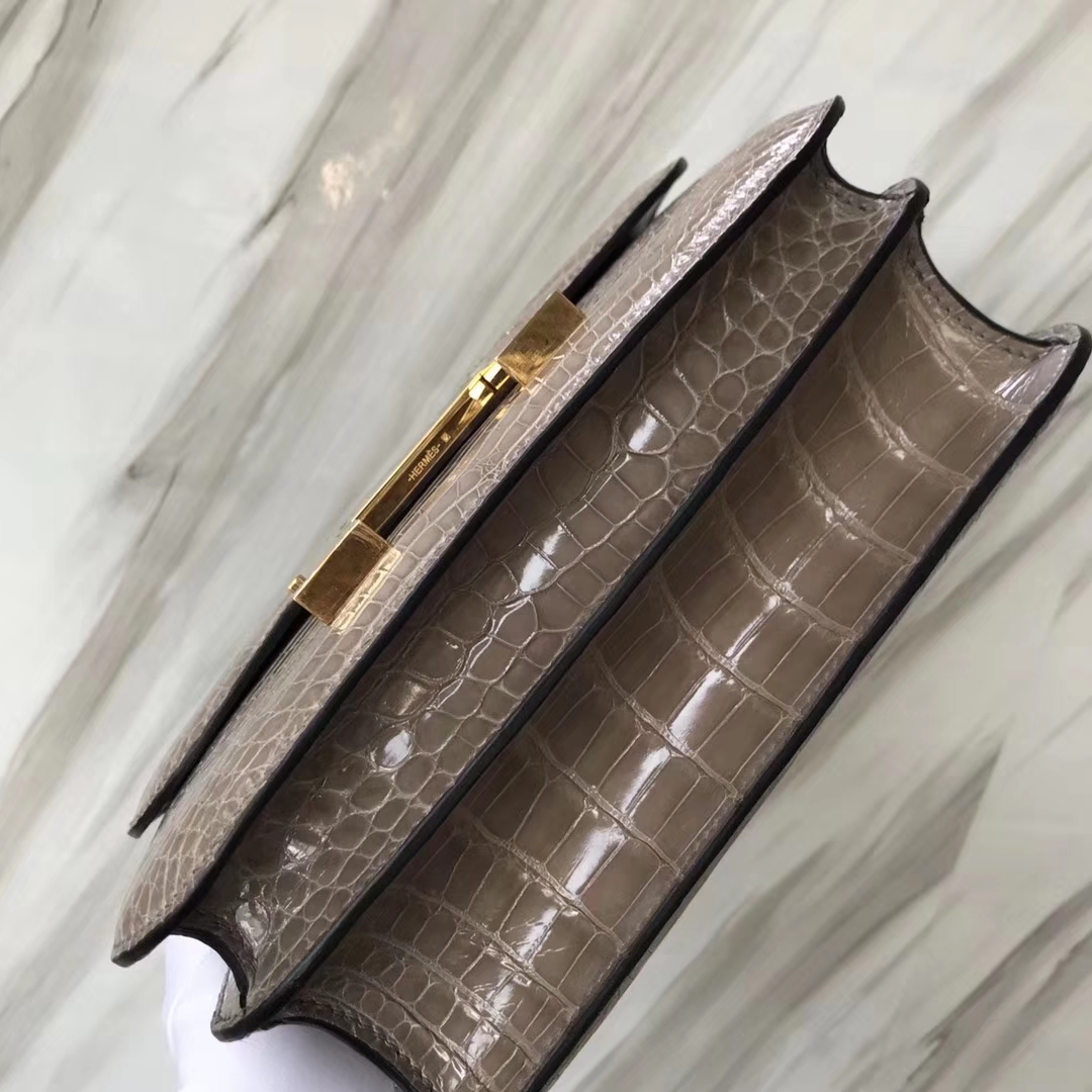 ブランド:エルメス;スタイル:コンスタンスコンスタンススチュワーデスバッグ;素材:アリゲーターシャイニークロコダイル、シャイニークロコダイルレザー、完璧なコンディション、トップハンドステッチ;カラー:CK81ターコイズグレーグリT;サイズ:24cm;ハードウェア:ゴールドバックル;付属品:ダストバッグ;用途:ショルダーバッグ、メッセンジャーバッグ