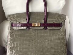 希少エルメスバーキンパールグレーアリゲータークロコダイル25CMシルバー金具