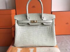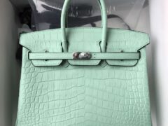 エルメスバーキンバッグサイズエルメス6Uミントグリーンマットクロコダイルレザーバーキン25CMシルバーバックル