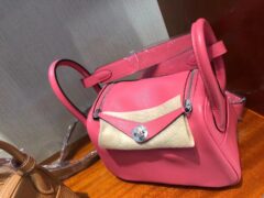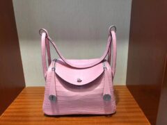 スポットエルメスリンディ26CMエルメス5Pチェリーブロッサムパウダーマットクロコダイルレザーリンディバッグワンショルダーウィメンズバッグシルバーバックル