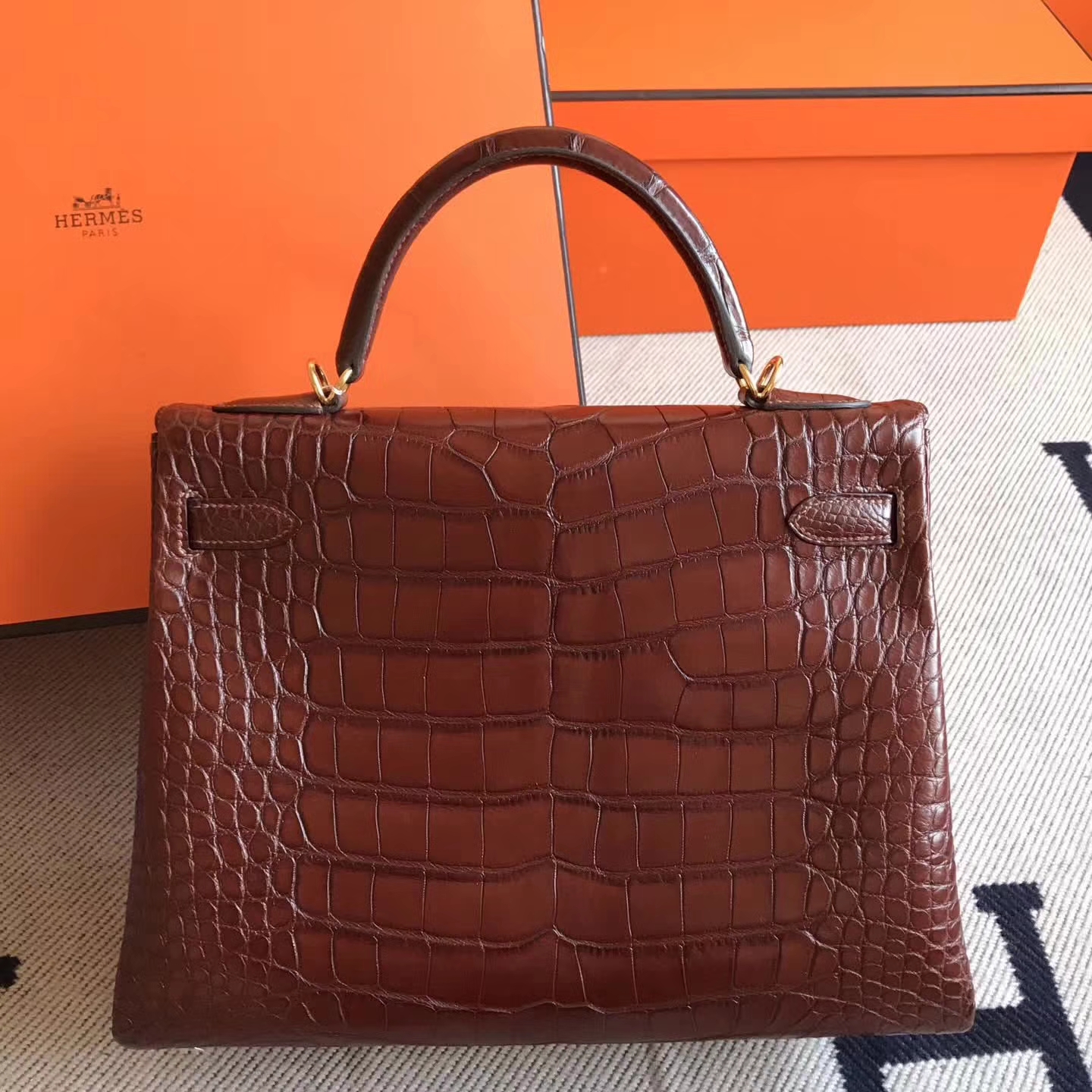 ブランド:エルメス;スタイル:インナーシーム付きケリーバッグ;素材:マットスクエアクロコダイルレザー;カラー:ブリックレッド;サイズ:28cm;ハードウェア:ゴールドバックル;付属品:ダストバッグ、ロック;用途:ハンドバッグ