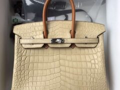 希少エルメスバーキンパールグレーアリゲータークロコダイル25CMシルバー金具