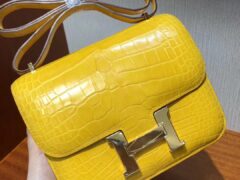 エルメスコンスタンス18CMエルメス9D琥珀色黄色の光沢のあるクロコダイルレザースチュワーデスバッグゴールドバックル