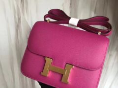 エルメスコンスタンス18CMエルメスL3ローズパープルオリジナルエプソムレザースチュワーデスバッグゴールドバックル/シルバーバックル