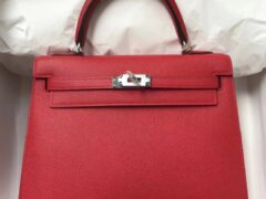 エルメスケリー25CMエルメスQ5フラッグレッドトップパームグレイン牛革ケリーバッグシルバーバックル
