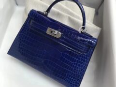 エルメスミニケリーバッグ2世代エルメスオリジナルシャイニークロコダイルレザー7Tエレクトリックブルーミニケリーハンドバッグ