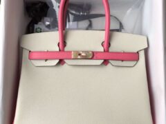 エルメスエルメスCK10ミルクシェイクホワイト8Wリップスティックパウダーパームグレイン牛革プラチナバッグBirkin30CMブラッシュドゴールドバックル