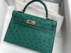 エルメスミニケリー2世代エルメスU4ベルベットグリーントップKKオーストリッチレザーミニケリーバッグゴールドバックル