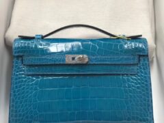 エルメスミニケリー22cm7Wイズミールブルーシャイニークロコダイルレザーシルバーバックル