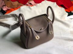 エルメスミニリンディ19cmCK18エレファントグレーTCレザーゴールドバックル