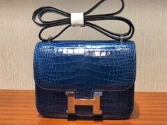 エルメスコンスタンス18CMエルメスコンスタンスバッグ7Qギリシャブルー光沢クロコダイルレザーシルバーバックル