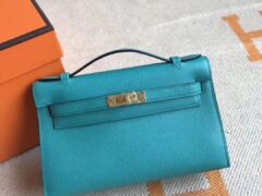 ブランド:エルメス;スタイル:ミニケリーポシェット;素材:オリジナルエプソムパームグレインレザー;カラー:C18エレファントグレー;サイズ:22cm;ハードウェア:ゴールドバックル;付属品:ダストバッグ、ロック;用途:クラッチバッグ、イブニングバッグ