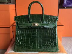 エルメス バーキン25 カノピ アリゲーターシャイニー クロコダイル シルバー金具 バーキン グリンー ハンドバッグ カーキ系