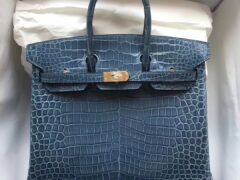 エルメスバッグ公式サイトエルメスブルーサフィールクロコダイル ポロサスシャイニーハンドバッグシルバー金具 濃紺のバーキン 静寂で美意識の高いブルー HERMES Birkin Blue Saphir 25CM Silver Hardware Alligator crocodile skin
