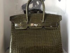 エルメス バーキン25 カノピ アリゲーターシャイニー クロコダイル シルバー金具 バーキン グリンー ハンドバッグ カーキ系