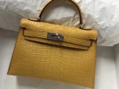 スポットエルメスミニケリーポシェットエルメス1Qミルクセーキパウダーシャイニークロコダイルレザーミニケリーバッグゴールドバックル