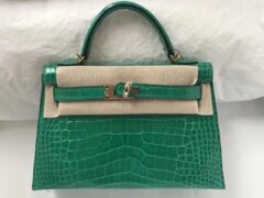 スポットエルメスエルメス6QエメラルドグリーンブライトクロコダイルレザーミニケリーバッグMinikelly22CMシルバーバックル