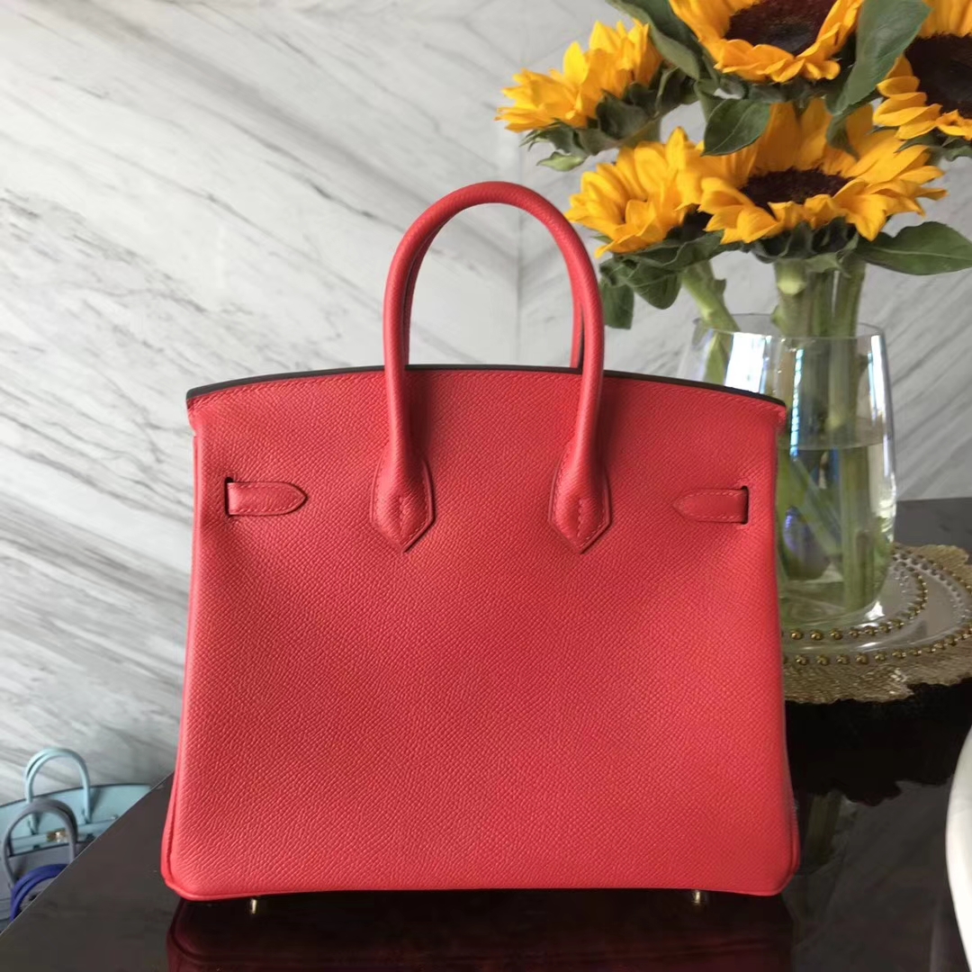 ブランド:エルメス;スタイル:バーキンプラチナバッグ;素材:オリジナルトップエプソムパームグレインレザー;カラー:S5トマトレッド;サイズ:25cm;ハードウェア:ゴールドバックル;付属品:ダストバッグ、ロック;用途:ハンドバッグ