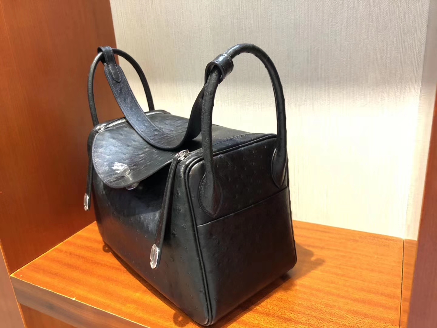 ブランド:エルメス;スタイル:リンディリンディバッグ;素材:輸入トップKKオーストリッチレザーオーストリッチ;カラー:CK89ブラックノワール;サイズ:30cm;ハードウェア:シルバーバックル;バッグ、メッセンジャーバッグ