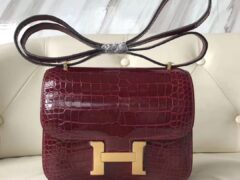 エルメスコンスタンスバッグエルメスシャイニークロコダイルレザースチュワーデスバッグConstance18CMF5ニューワインレッドゴールドバックル