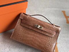 エルメスクロコダイルレザークラッチエルメスミニケリー22cmキャラメルシャイニークロコダイルレザーミニケリーバッグ