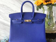 エルメスバーキン25CMエルメスオリジナル7T電気光学ブルークロスグレインレザーバーキンゴールドバックル