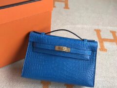 エルメスミニケリー22cmB3タンザニアブルーマットクロコダイルレザーゴールドバックル