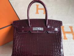 エルメスバーキンバッグエルメスボルドーバーガンディ光沢のあるクロコダイルレザーバーキンシルバーバックル