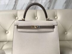 エルメスケリー25CMエルメスCK10ミルクシェイクホワイト/CK18エレファントグレーオリジナルエプソムレザーケリーバッグゴールドバックル